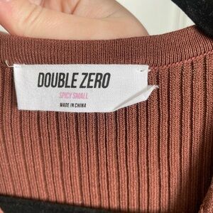 This chic brown ribbed dress by Double Zero features a flattering bodycon fit with long cuffed sleeves and a v-neckline. Size S but very stretchy