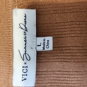 Stylish brown ribbed cardigan with button-up front. Features a classic collar and long sleeves.