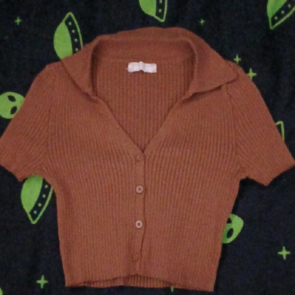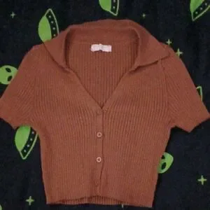 Stylish brown ribbed crop top with button-up front. Features a collared neckline. Never worn, basically new.