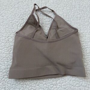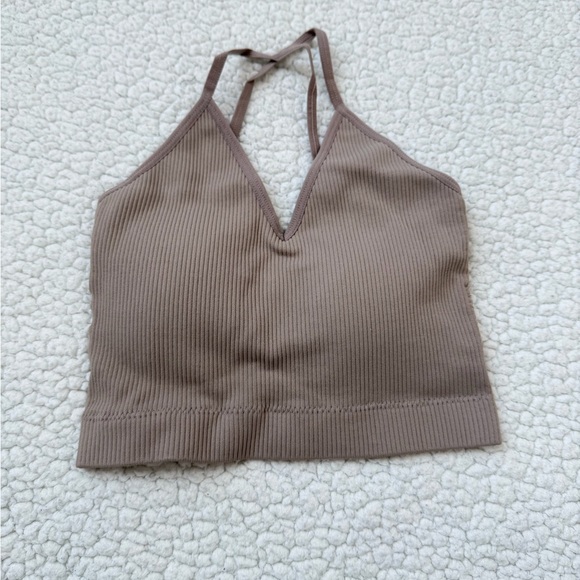 Elevate your style with this chic brown ribbed padded crop top. Perfect for casual outings or layering. size s/m