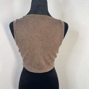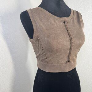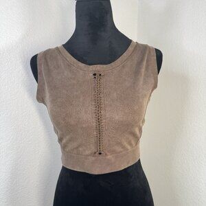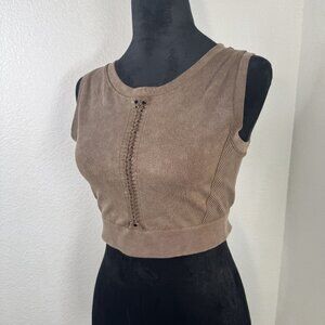 Brown Ribbed Cropped Tank Top With Lace-Up Detail Kids XL