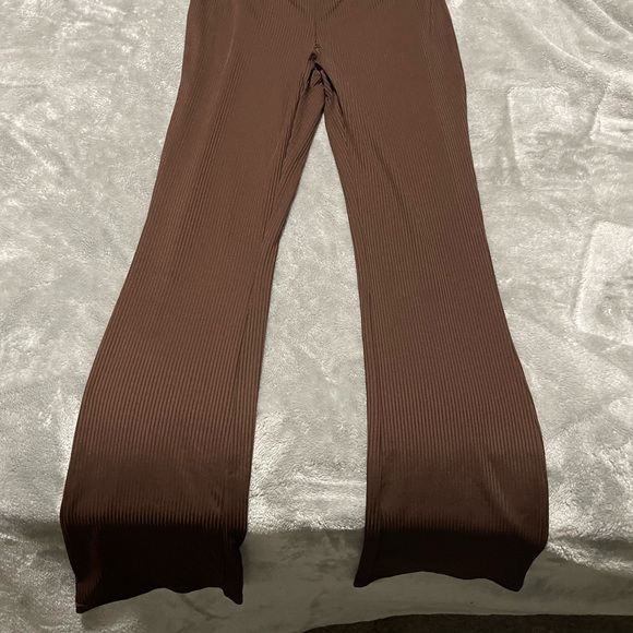 Stylish brown ribbed flare pants. Perfect for casual wear.