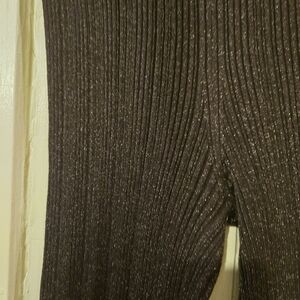 Brown Ribbed Flared Knit Pants