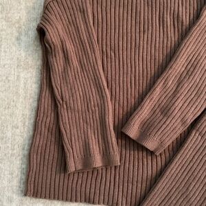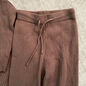 Stay warm and stylish with this cozy brown ribbed knit set. Perfect for lounging or casual outings.