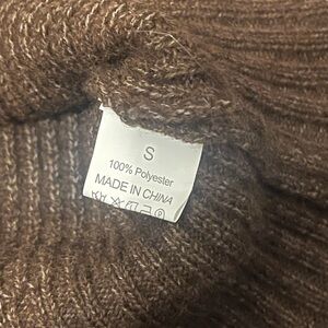 Cozy brown ribbed knit sweater with long sleeves and a V-neckline.