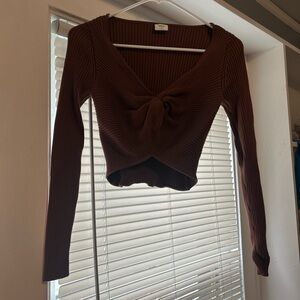 Brown Ribbed Knot Front Top