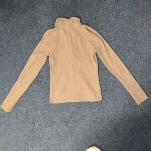 Brown Ribbed Long Sleeve Collared Top