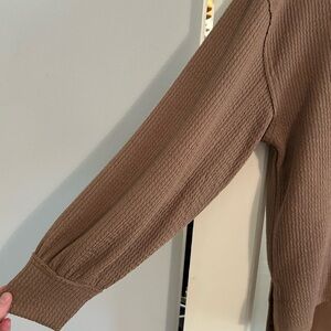 Brown Ribbed Long Sleeve Top
