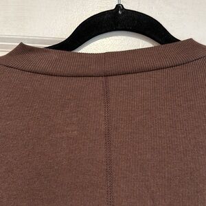 Super cute, brown mock neck top with ribbed detailing. A New Day brand, size large. Short sleeved, but sleeves are a bit longer than a typical short sleeved shirt. Rarely worn, great condition!