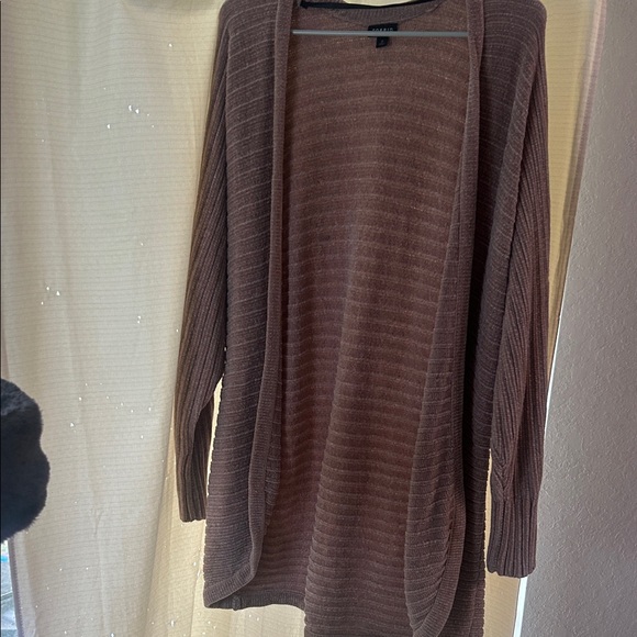 Stay cozy and stylish with this brown ribbed open-front sweater. Perfect for layering in cooler weather.