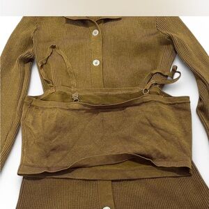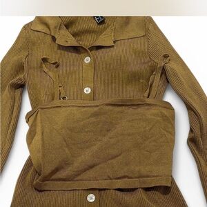 Stay cozy and stylish with this brown ribbed sweater set. Perfect for layering, this set offers comfort and elegance for any occasion.