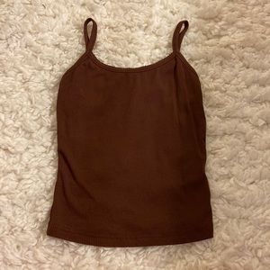 Brown Ribbed Tank Top