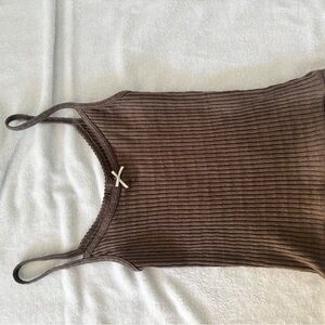Brown Ribbed Tank Top
