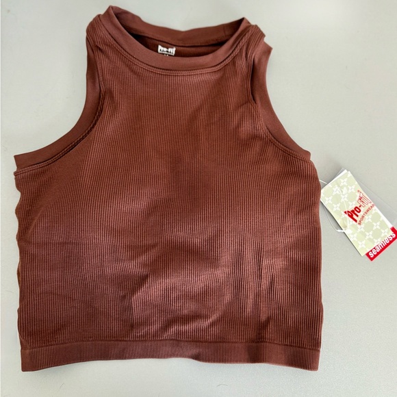 Sporty brown ribbed performance tank — sleeveless with a fitted design for an active, casual look.