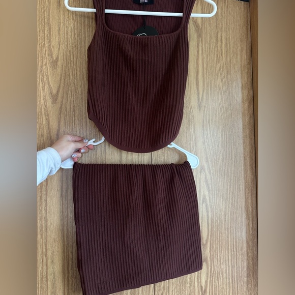 Brown Ribbed Two-Piece Set
