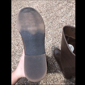 Synthetic brown leather boot, super comfortable, with a beautiful criss-cross diamond detail in the back of the boot
