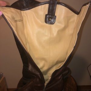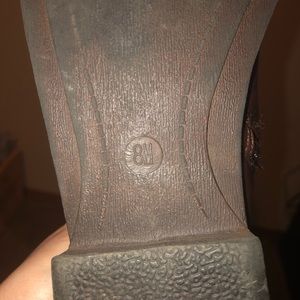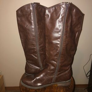 These rich brown riding boots from Maurices are in EUC. They feature an inside zipper, outside boot strap with brass embellishment, size 8. 15.5” tall and 7.5” wide.