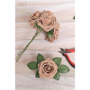 Brown Roses Artificial Flowers 25pcs Fake Flowers Bulk Perfect DIY Fall Wedding