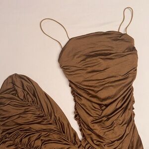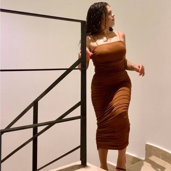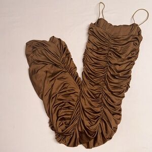 Brown Rouched Dress Worn once Size small but very stretchy and flattering
