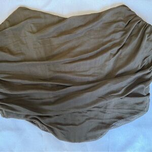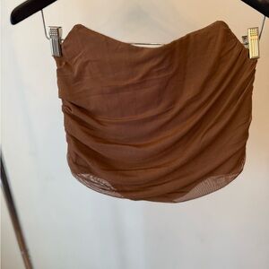 Soft brown ruched mesh corset top with layered drape. Stretch fabric. Brown color adds warm, neutral style. Size listed as XL, but is more of a M/L.