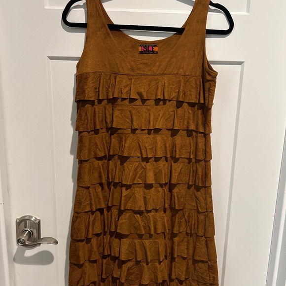 Chic and stylish brown ruffle dress perfect for any occasion or concert!