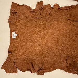 Elevate your style with this elegant brown ruffle sleeve blouse. Perfect for any occasion.