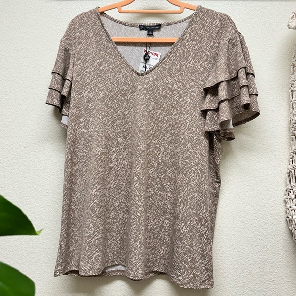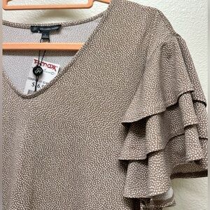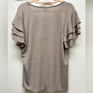 Elevate your style with this elegant brown ruffle sleeve top. Perfect for any occasion. Light and flowy. No flaws!