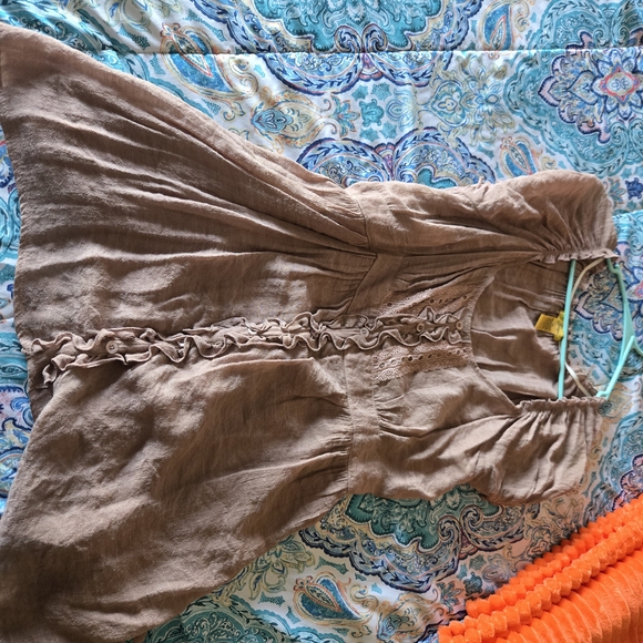 Brown Ruffle-Front Linen Dress