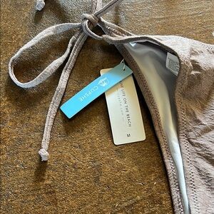 Stylish brown/ beige bikini set with ruffled details. Perfect for the beach.