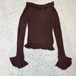 Brown Ruffled Cardigan
