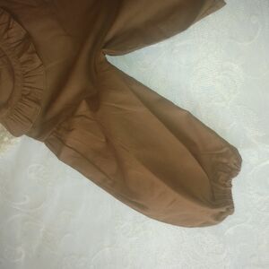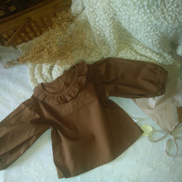 Charming brown kids top with ruffled neckline. Perfect for any occasion.