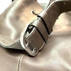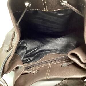 Medium sized brown satchel bag. Appears to be vegan leather body with satin shell. Inner zip pocket is missing a pull. I will provide a generic replacement. There are 3 dark stains on front of the purse. Please see images. No other flaws.