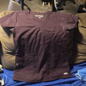 Comfortable brown scrub set with top and pants. Ideal for healthcare professionals. Most comfortable scrubs you will ever wear! No rips, stains or tears. Button closure in the back for adjustability. Slits in the bottoms to cover your shoes. So soft, you will love them!