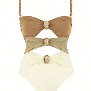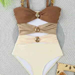 Brown Sexy Women's Colorblock Cut-Out Spaghetti Strap One-Piece Swimsuit