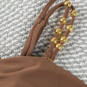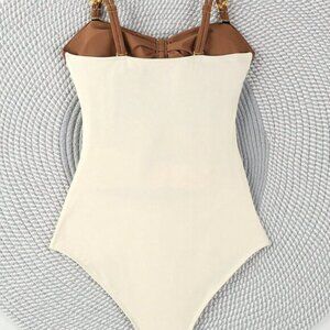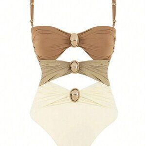 Brown Sexy Women's Colorblock Cut-Out Spaghetti Strap One-Piece Swimsuit
