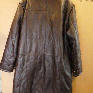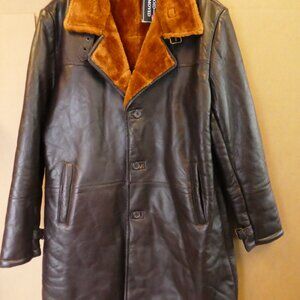Brown leather peacoat with full shearling (faux) collar & interior