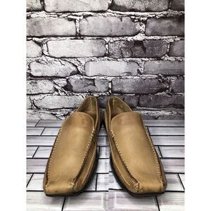 Selling Brown Shoe Bellagio Brown Leather Square Toe Slip on Loafers Shoes Men Sz 10.5M US/43.5EU-44EU