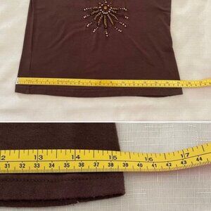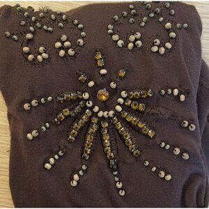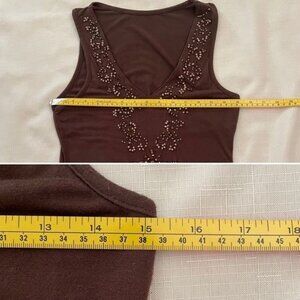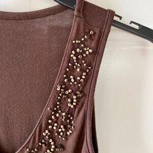 Brown Sleeveless V-Neck Womens Top With Beaded Embellishments