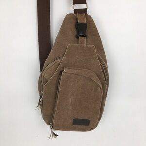 Brown Sling Bag One Strap Backpack Cotton Canvas Unisex By Kalevel