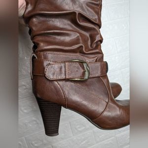Brown Slouchy Mid Heel Boots - Women's Size 7