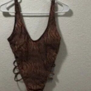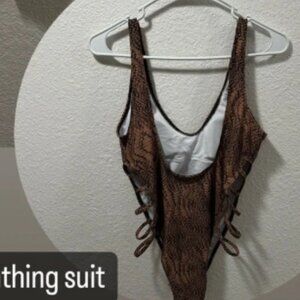 Stylish brown snakeskin print swimsuit with side lace-up
