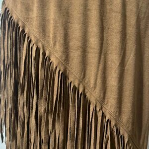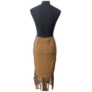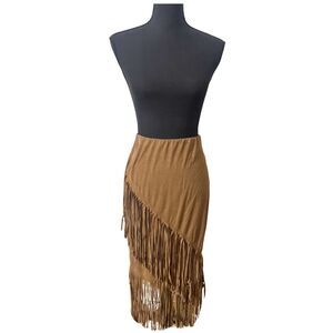Brown South Western Boho Cowgirl Fringe Midi Maxi Skirt Size S Halloween Costume