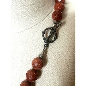 Brown Sparkling Beads W.Rose Stone Carving Necklace Classic Career Cosplay Boho