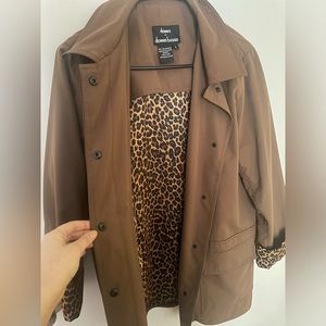 Only worn a couple of times- perfect Spring jacket with leopard print interior. size small!