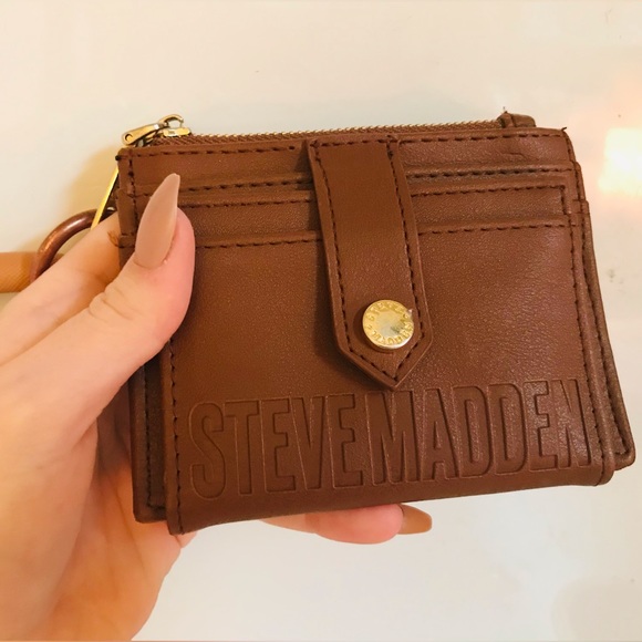 Brown Steve Madden wallet clutch ring handle gold zipper & button (not new)