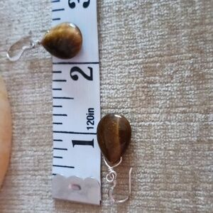 Brown Stone Tear Drop French Wire Dangle Earrings