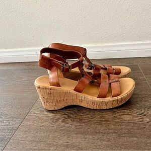 Elegant tan leather sandals with classic straps. Ideal for everyday wear.