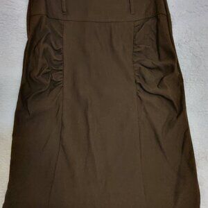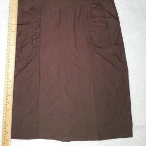 Brown Stretch Ruched Modern Career Rayon Pencil Skirt Medium