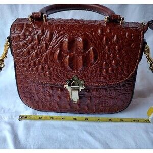 Brown Structured Crocodile Pattern Leather Handbag Shoulder. Quiet Luxury