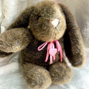 Brown Stuffed Bunny with Pink Ribbon